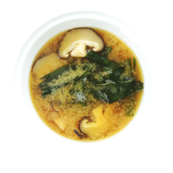 Древесные грибы шиитаке, водоросли вакаме, зелёный лук